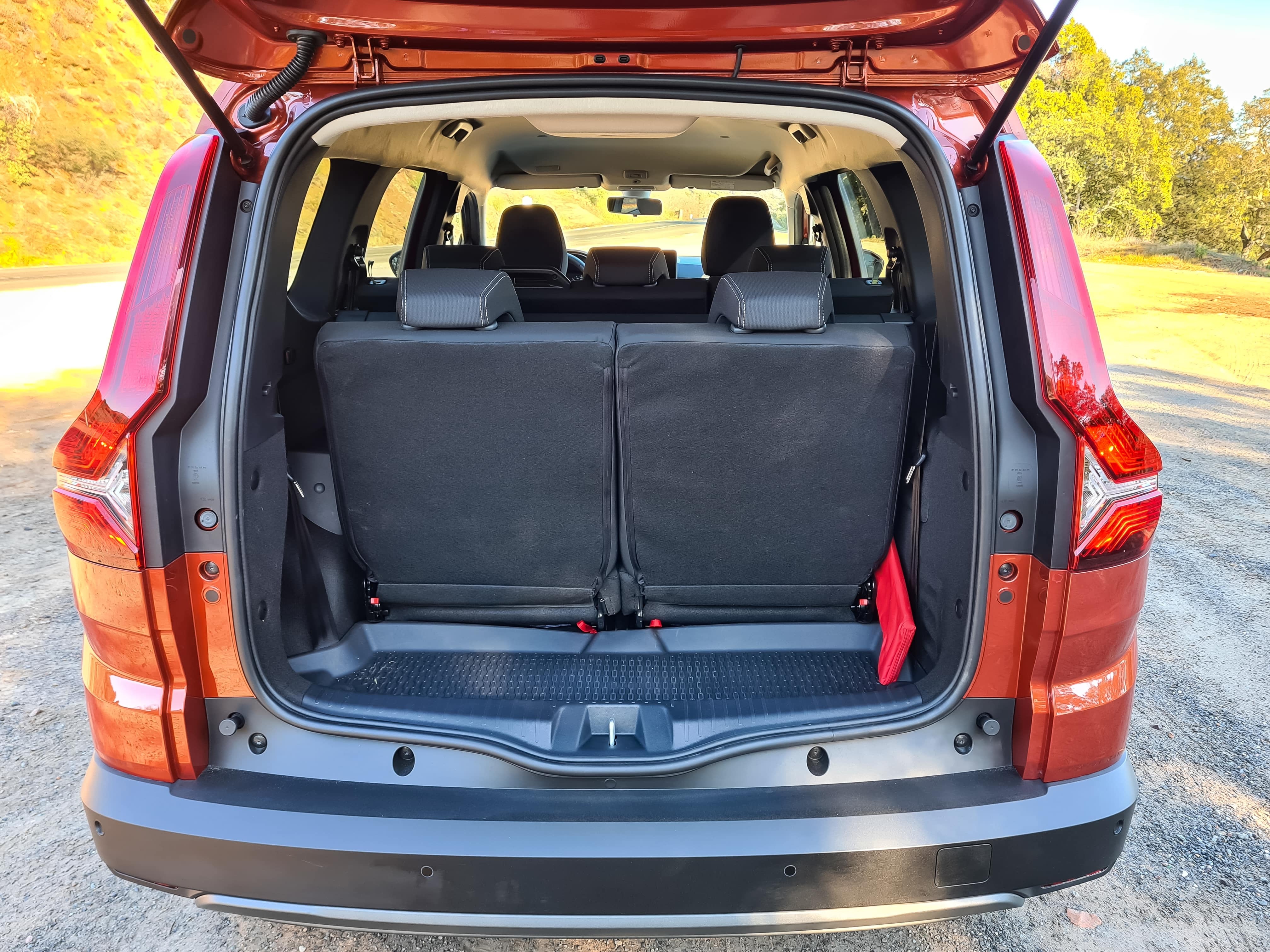 Tymczasem warto ocenić to, czym to auto się charakteryzuje. Z zewnątrz jest estetyczne, ale jak mówiłem – testowałem topowy wariant. Wizualnie jest OK, kilka ładnych akcentów, odrobinę „terenowych” wstawek oraz przyzwoity, aż 20-centymetrowy prześwit. Jasne, to nie czyni z Dacii Jogger samochodu terenowego, ale gdy wybieramy się z rodziną na piknik lub na działkę, pewność, że auto nie zawiśnie na koleinie lub nierównej nawierzchni w lesie jest na wagę złota. Na wagę złota jest również wspomniana przestrzeń, bowiem w samochodzie w miarę wygodnie może podróżować 7 osób.