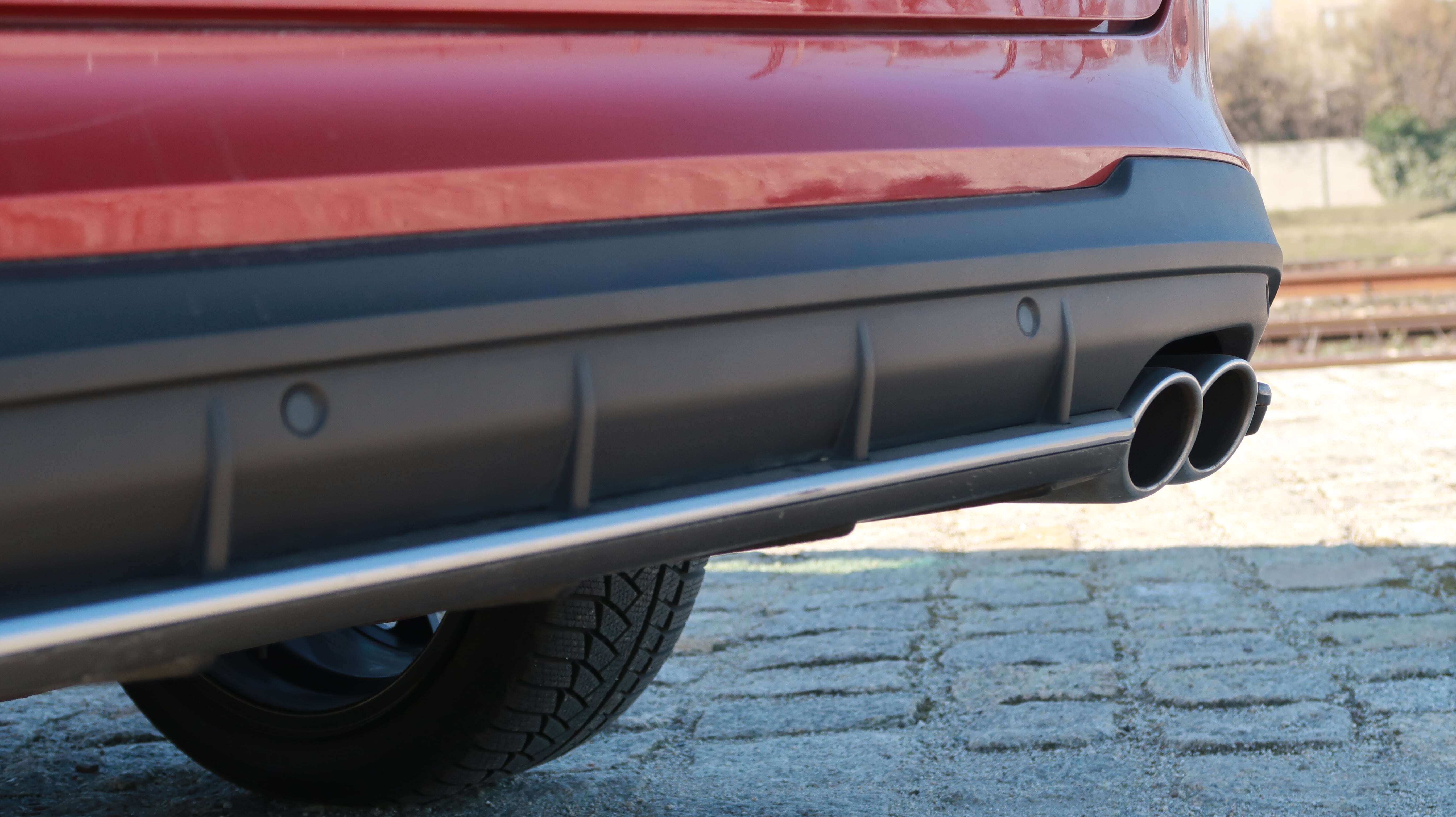W prezentowanej wersji otrzymujemy ciekawe felgi w rozmiarze 18” z polerowanymi ramionami. Nadwozie mierzy ponad 4,5 metra, co obiecuje obszerne wnętrze oraz bagażnik. Tylne światła są również w technologii LED. Kształt świateł pozycyjnych nawiązuje do przednich świateł do jazdy dziennej. Zobaczymy ponadto zaakcentowany spoiler, przyciemnione szyby oraz dyfuzor w dolnej części zderzaka. Element, który cenię to wyeksponowana podwójna końcówka układu wydechowego z prawej strony.