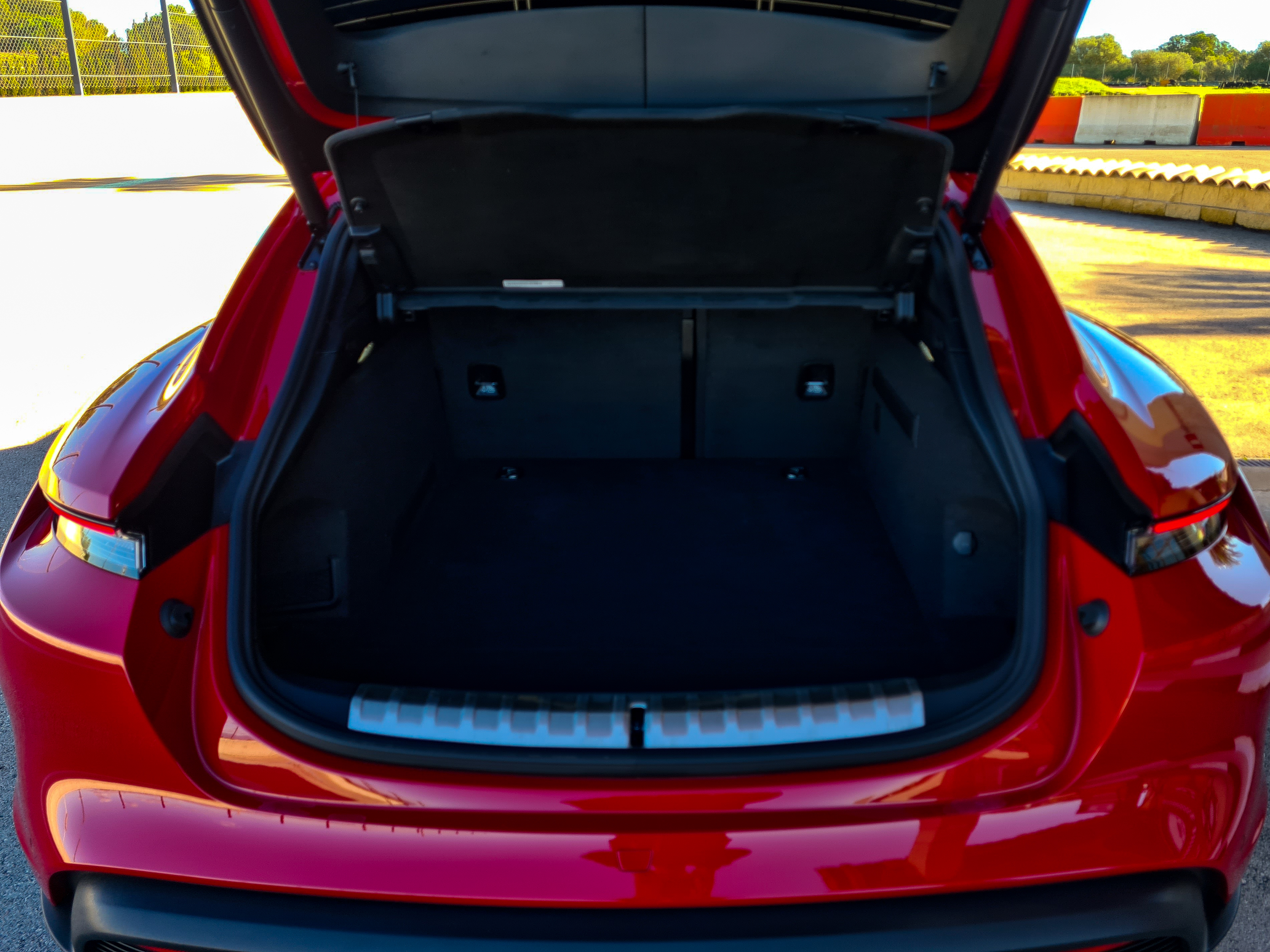 Taycan Sport Turismo jest również zaskakująco przestronny i wygodny. Bagażnik ma regularne kształty i pojemność 446 litrów. Po złożeniu oparć kanapy (a raczej dwóch foteli) przestrzeń powiększa się do 1212 litrów. Dodatkowo z przodu jest niewielki bagażnik na zakupy, walizkę lub inne drobiazgi o pojemności 81 litrów. Jasne, znajdziemy pojemniejsze auta za ułamek tej ceny, ale nie bijmy się z koniem – niektóre porównania nie mają sensu. Niektórych może również zniechęcać fakt, że z tyłu usiądą wygodnie tylko dwie osoby. Ta trzecia będzie tam raczej za karę i z pewnością szybko się pochoruje, więc niech od razu jedzie autobusem. Nadwozie jest również bardzo szerokie i niskie, prześwit nie polubi się również ze spowalniaczami i nierównymi nawierzchniami. Siedzi się bardzo nisko, i jeśli ktoś ma problemy z kręgosłupem, każde zajmowanie miejsca lub wysiadanie będzie obarczone nie tylko bólem, ale i utratą godności. Tak, to są te kompromisy, o których wspominałem wcześniej. Mało istotne, zgadzam się.